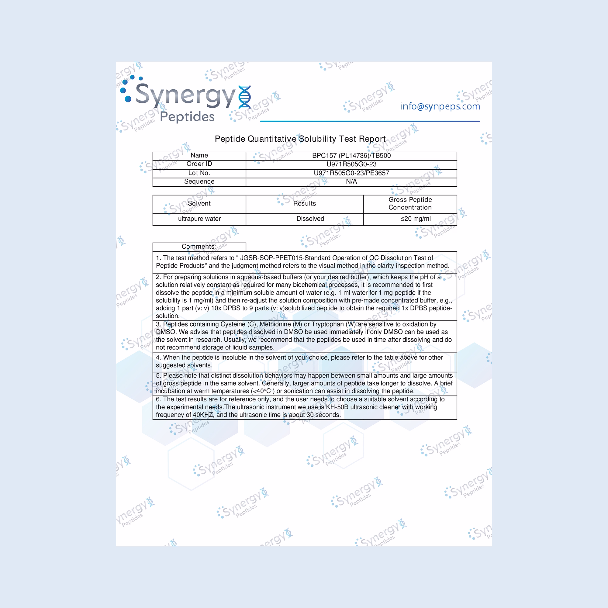 - Overall Well-Being: The combined effects of BPC-157 and TB500 may contribute to improved circulation, faster recovery, and better overall health, making it ideal for athletes and those recovering from physical stress.