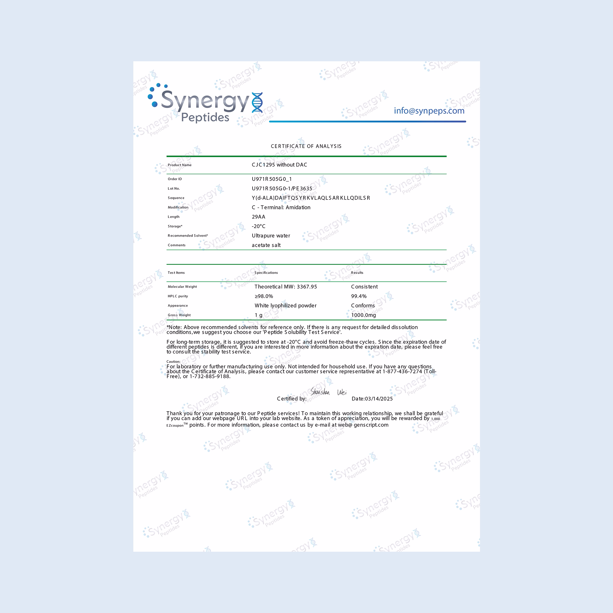 If you’re an athlete seeking enhanced muscle growth and recovery, or someone looking to reduce body fat and slow down the aging process, CJC-1295 could be an excellent choice. Whether you choose the version with DAC for less frequent dosing or without DAC for more natural GH pulses, always consult with a healthcare provider to tailor the peptide to your specific needs.