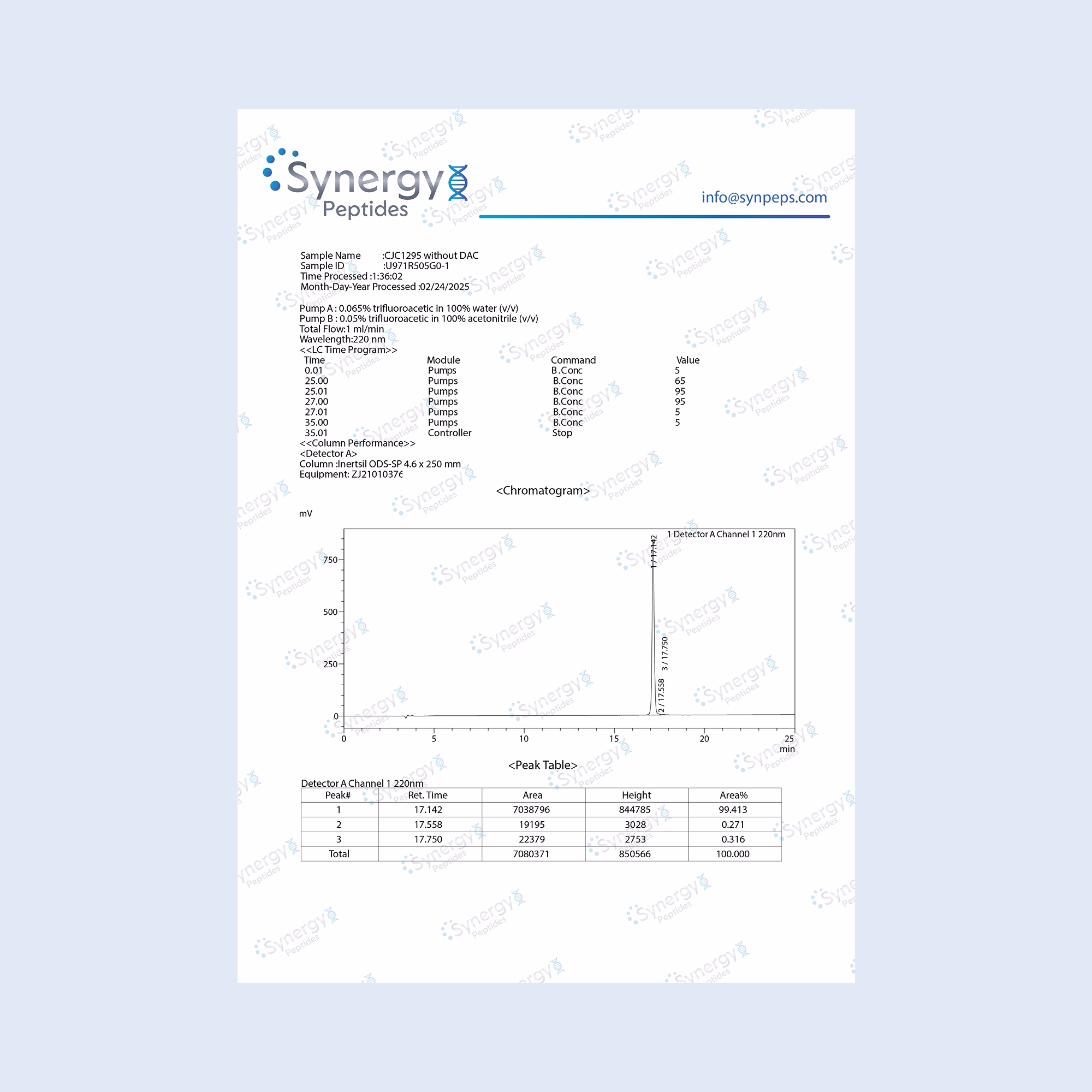 CJC-1295 is a synthetic analogue of Growth Hormone-Releasing Hormone (GHRH) that stimulates the pituitary gland to increase growth hormone (GH) production. This peptide mimics the action of naturally occurring GHRH, leading to a sustained and natural boost in GH levels, offering numerous benefits for muscle growth, fat loss, metabolic health, and even anti-aging.